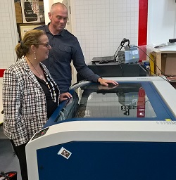 John Peto from Nerve Centre shows Donna O'Connor 3D laser printer